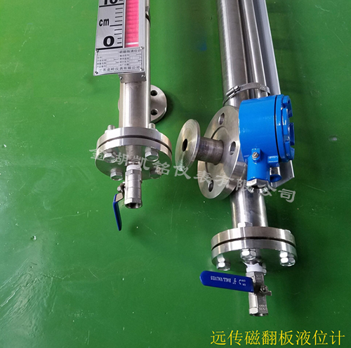 在管體的另一側可按用戶需要加裝電遠傳變送器,將液位高度轉換成標準電流信號輸出,以供液位信號輸出,以供液位信號遠傳至二次儀表進行指示控制與檢測。